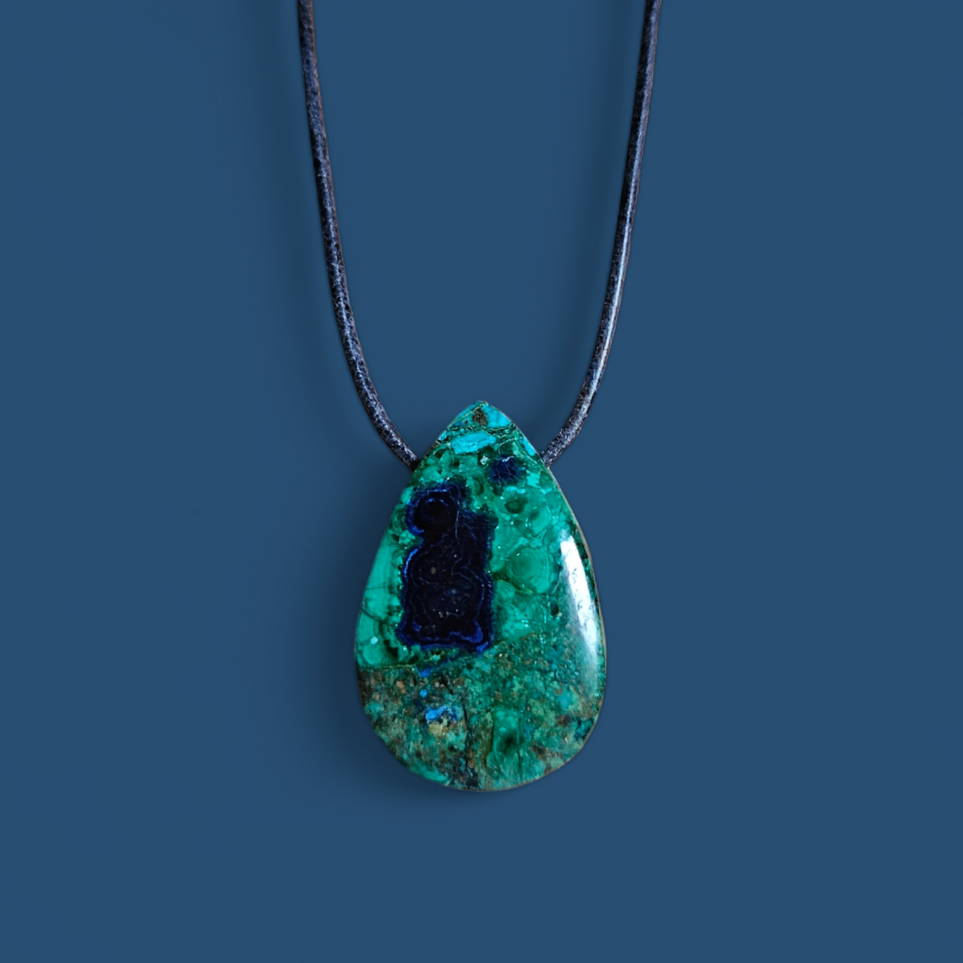 Azurit wird mit geistiger Klarheit und spirituellem Bewusstsein assoziiert, während Malachit für Heilung, Wachstum und Transformation steht.