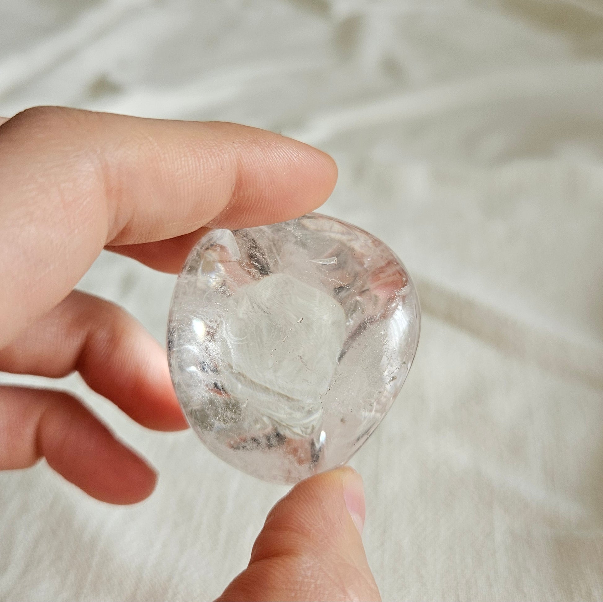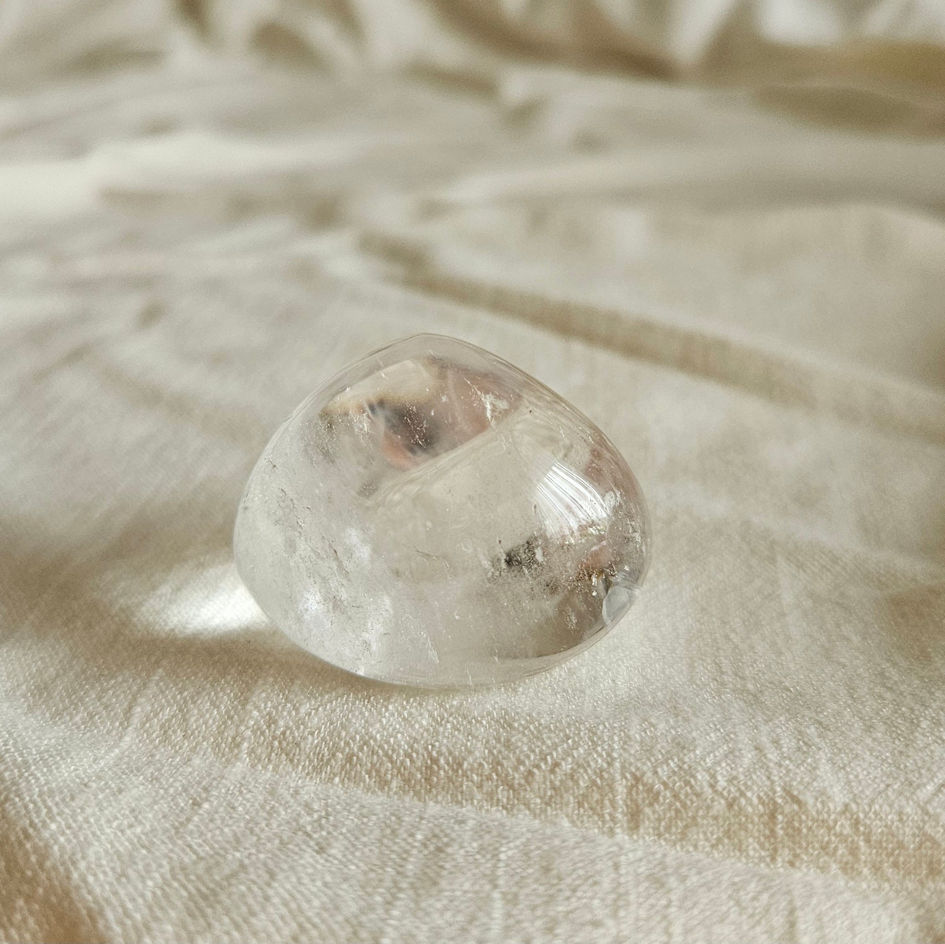 Du erhältst den abgebildeten Bergkristall Handschmeichler in einer Größe von ca. 3,5 x 3 x 3 cm. Bitte beachte: Ein Stein kann gesteinstypische Einkerbungen zeigen.