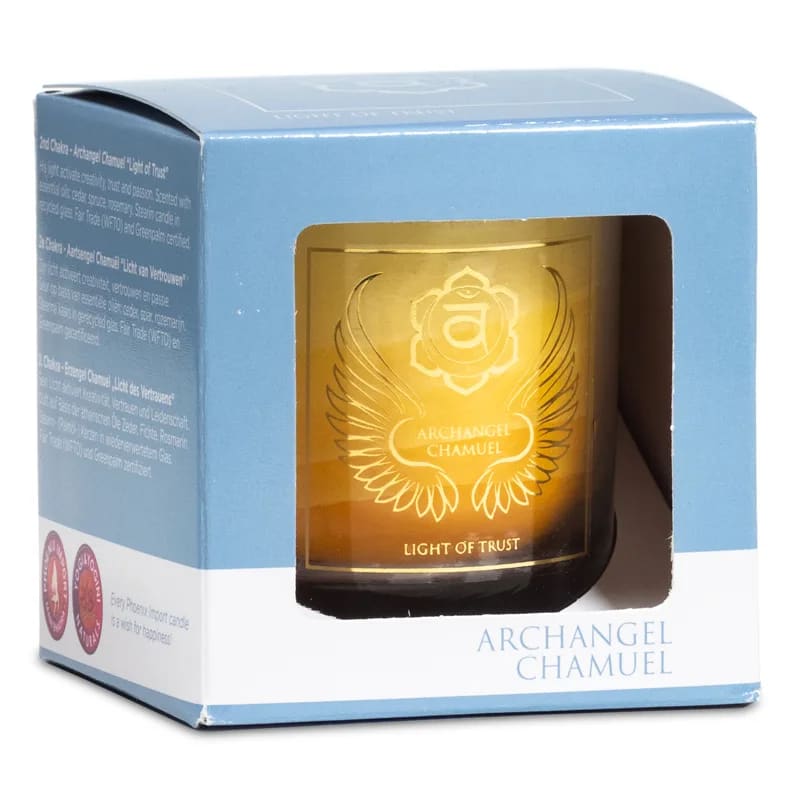 Duftende Votiv-Kerze Erzengel Chamuel "Licht des Vertrauens" 2. Chakra