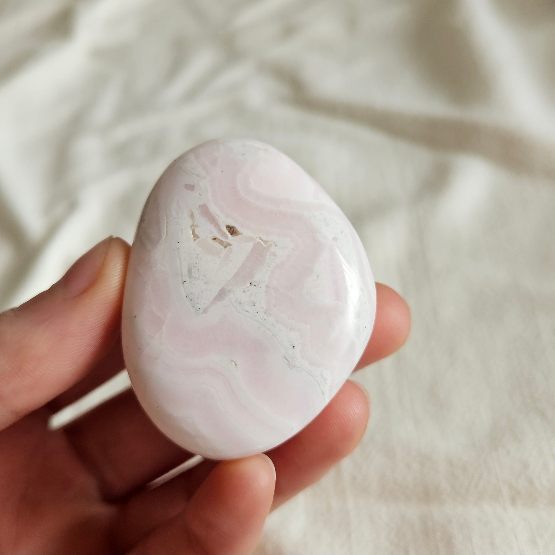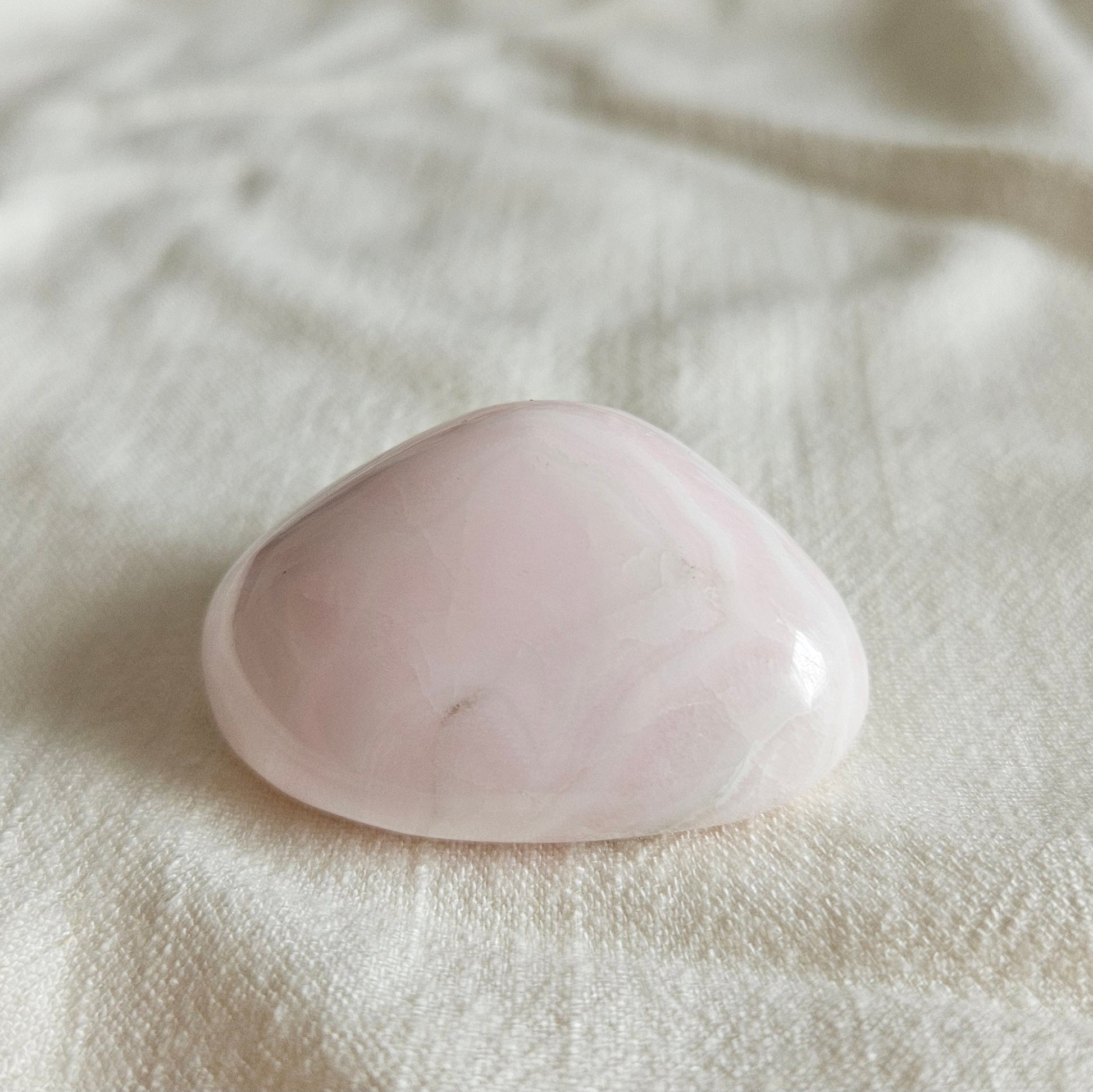 Manganocalcit zeichnet sich durch eine zarte rosa Farbe aus und wird oft als Stein der Herzenswärme bezeichnet.