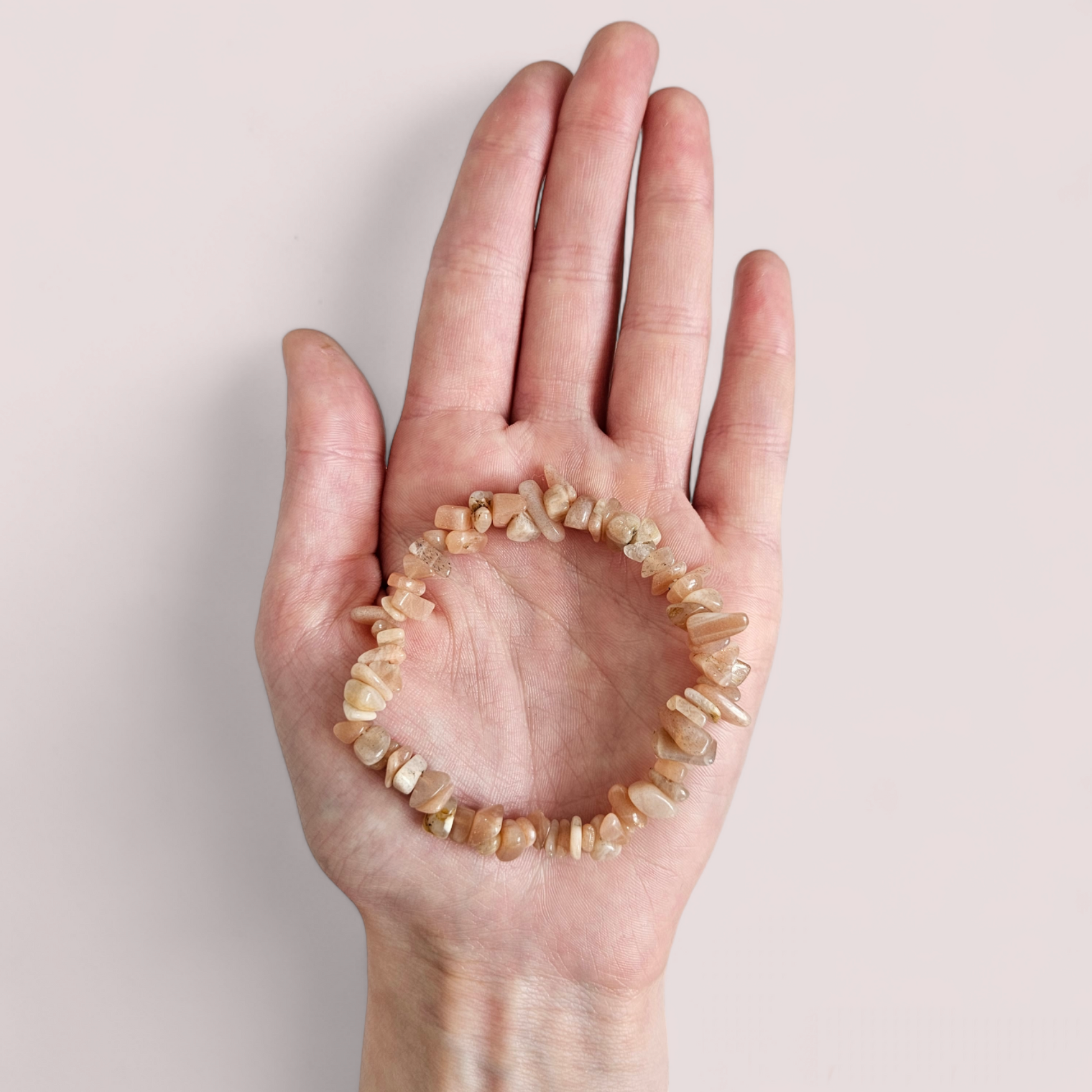 Du erhältst ein intuitiv ausgewähltes Mondstein Splitterarmband.
