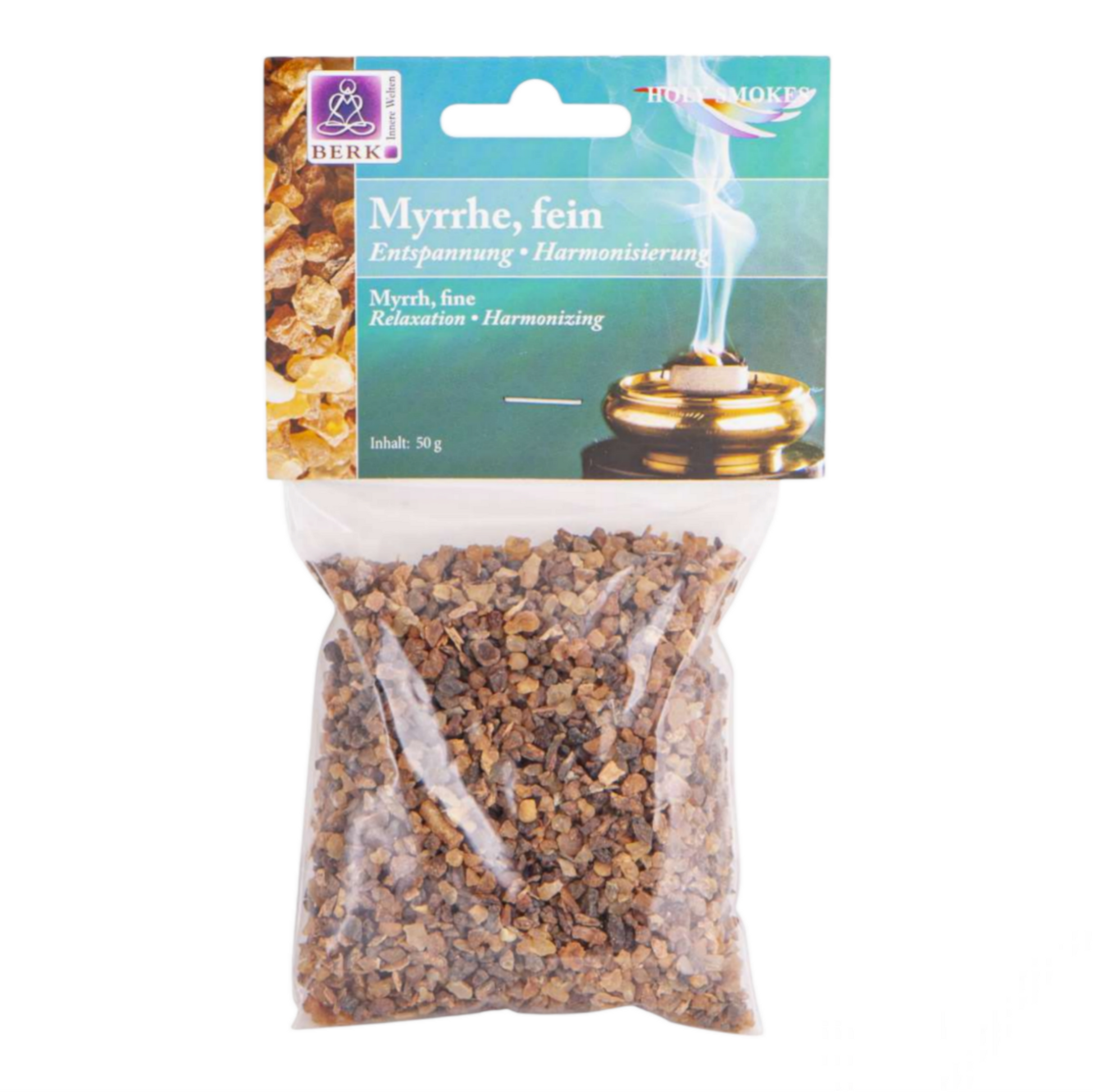 Myrrhe war bereits in der Antike ein wichtiger und teuerer Räucherstoff. Sie hat etwas Tiefes und Mystisches. Sie hat die Kraft, Geist, Körper und Seele in Einklang zu bringen. Sie schärft den Blick für das Wesentliche und schafft eine Verbindung zu feinstofflichen Welten. Ihr Duft ist balsamisch weich und warm mit Tiefgang. Da sie sehr feinkörnig ist, eignet sie sich sehr gut für feine Dosierungen.