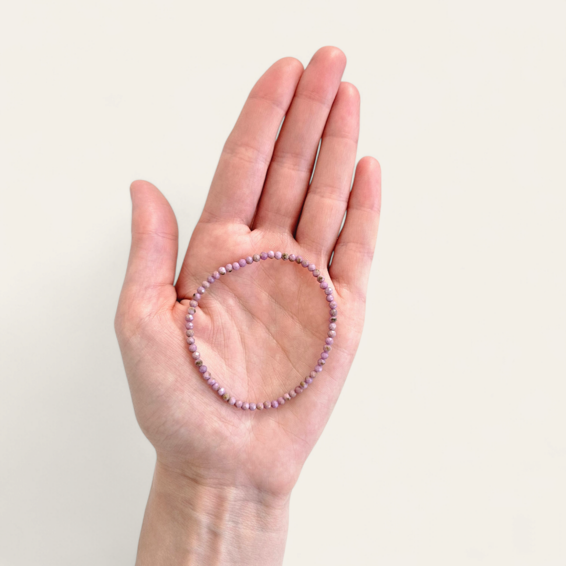 Schmuck für die Seele: Das Armband aus hochwertigen rundum geschliffenen (facettierten) Phosphosiderit Kugeln (ca. 3 mm), ist auf robustem Gummi aufgezogen und hat einen Innenumfang von ca. 17 cm.
