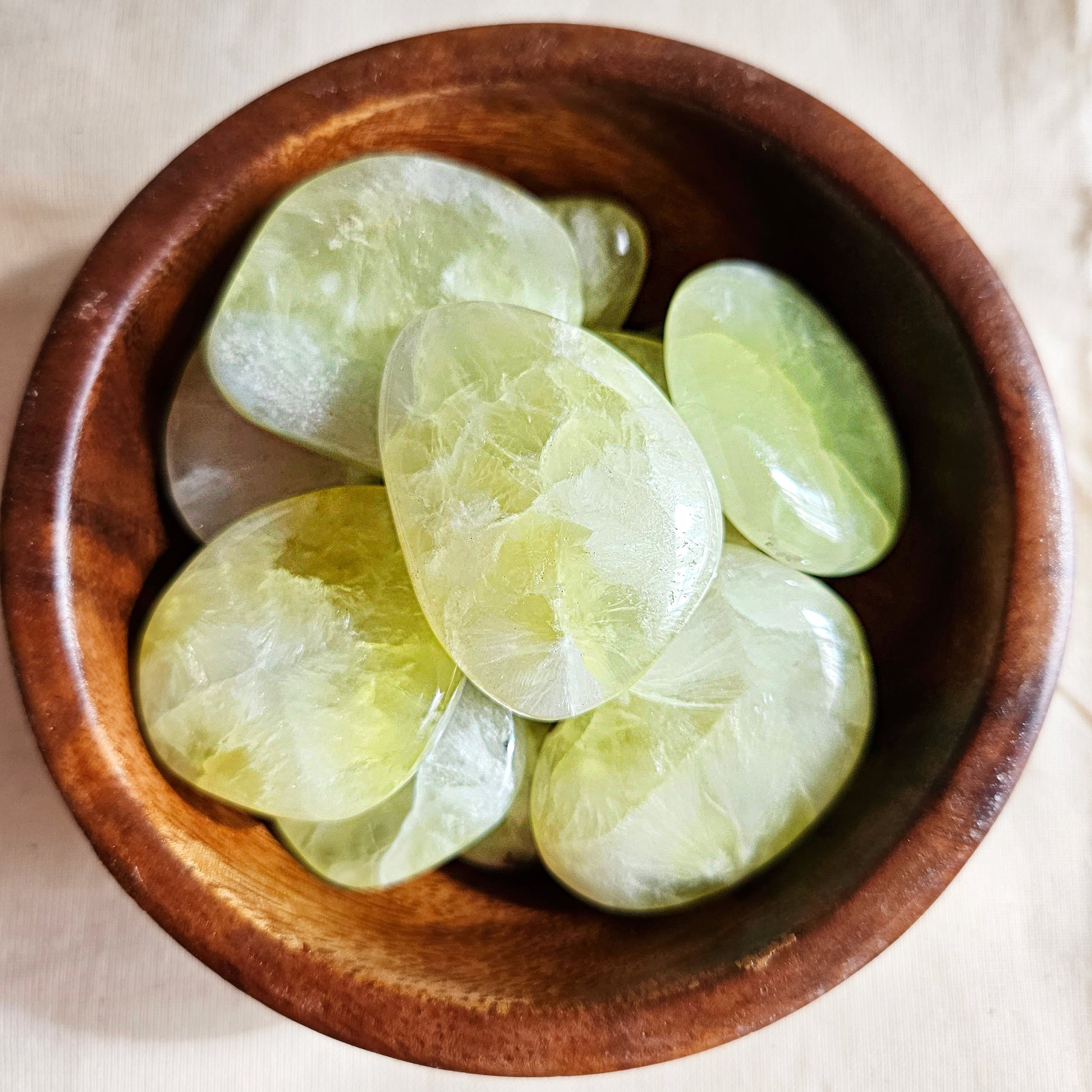 Du erhältst einen Prehnit mit Hornblende Scheibenstein in einer Größe von etwa 2 - 3 cm. Bitte beachte: Das Foto dient nur zur Veranschaulichung. Du erhältst einen Stein, der intuitiv ausgewählt wird. Jeder Stein ist ein Unikat, mit seiner eigenen persönlichen Form, Farbe, Struktur und Musterung. Ein Stein kann gesteinstypische Einkerbungen zeigen.