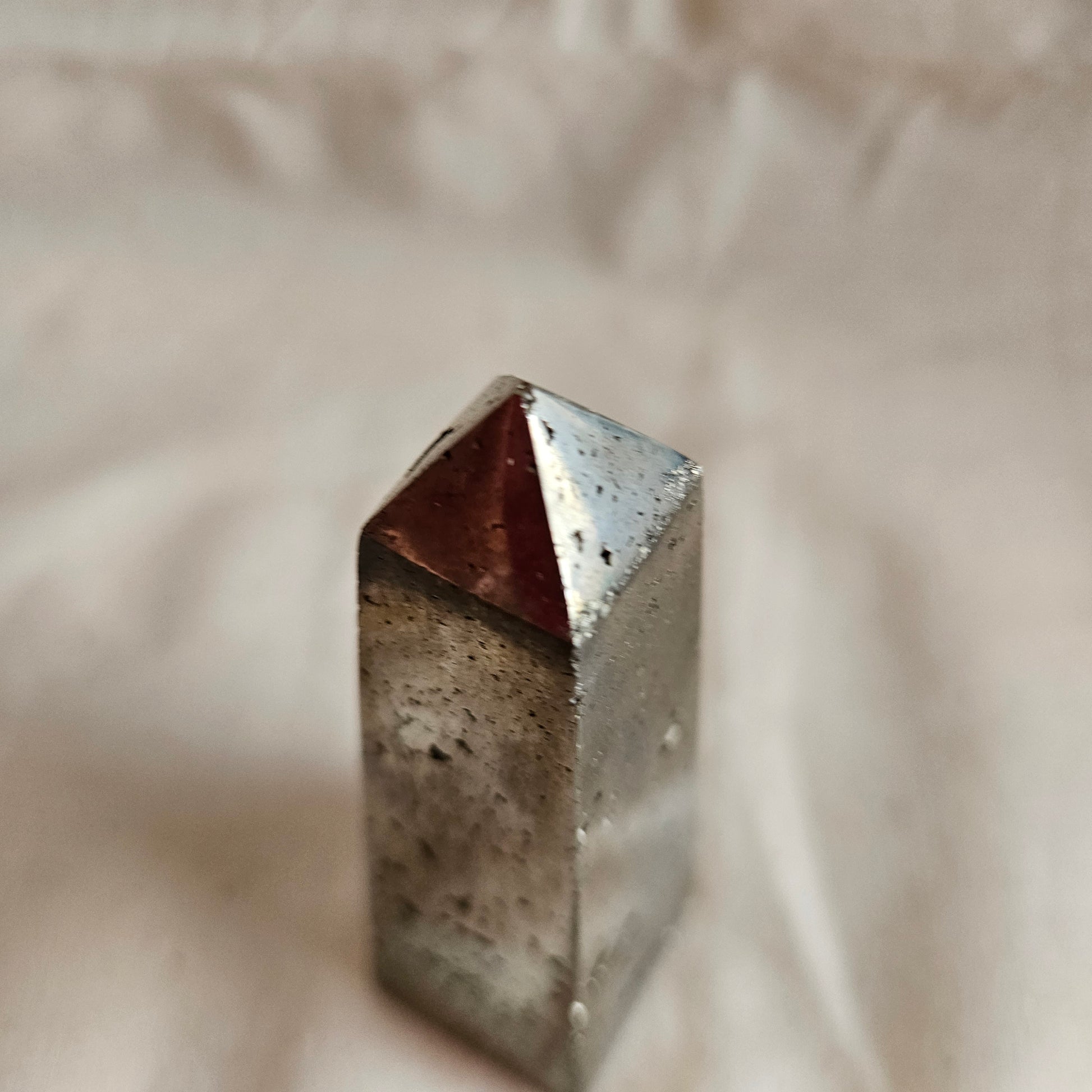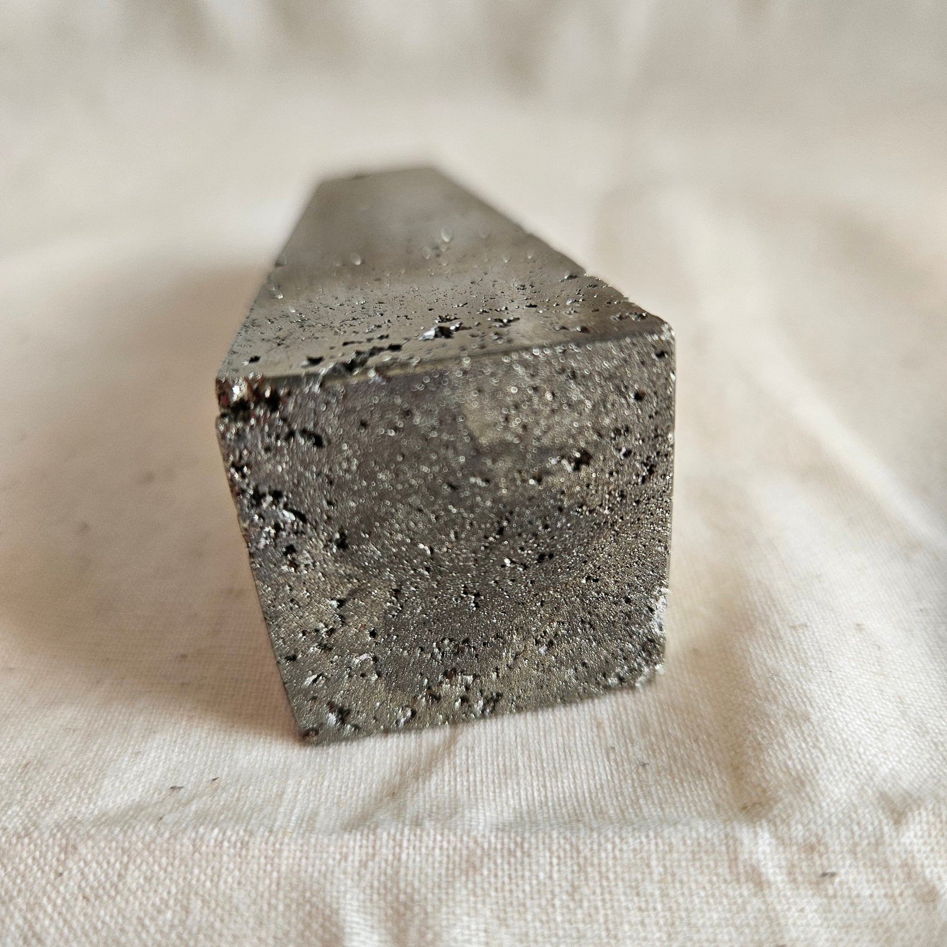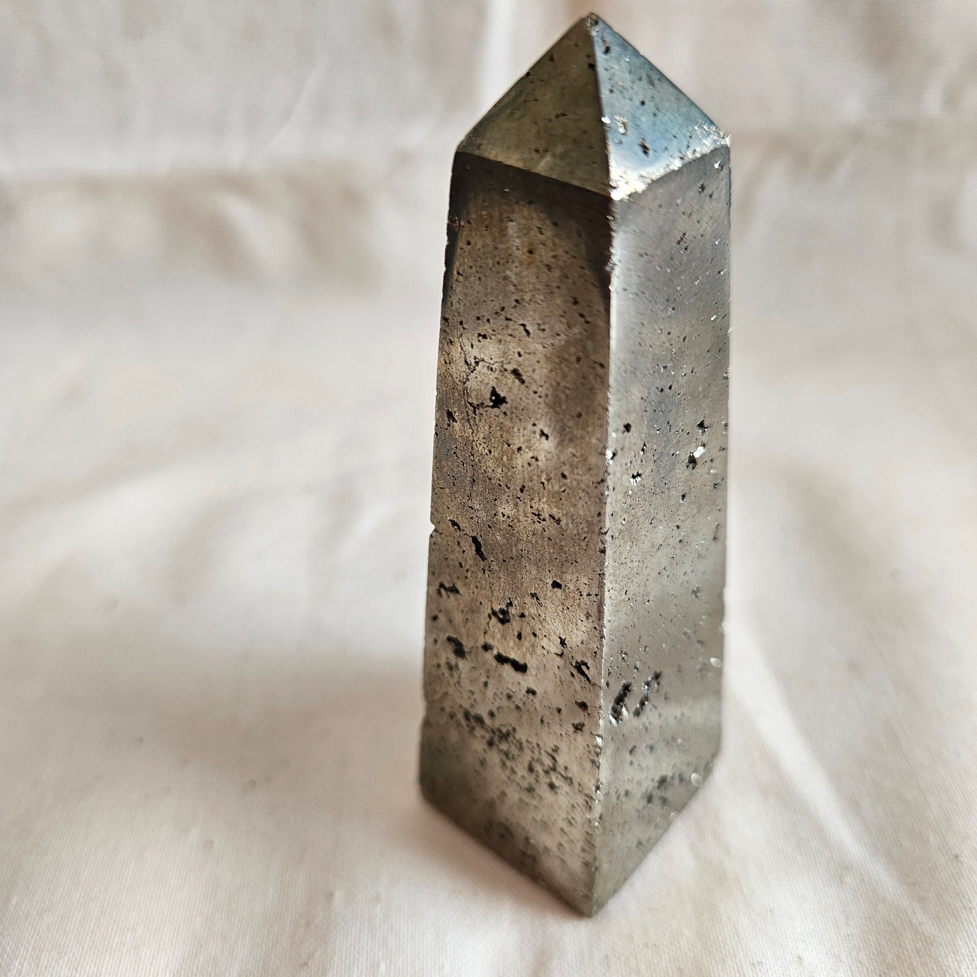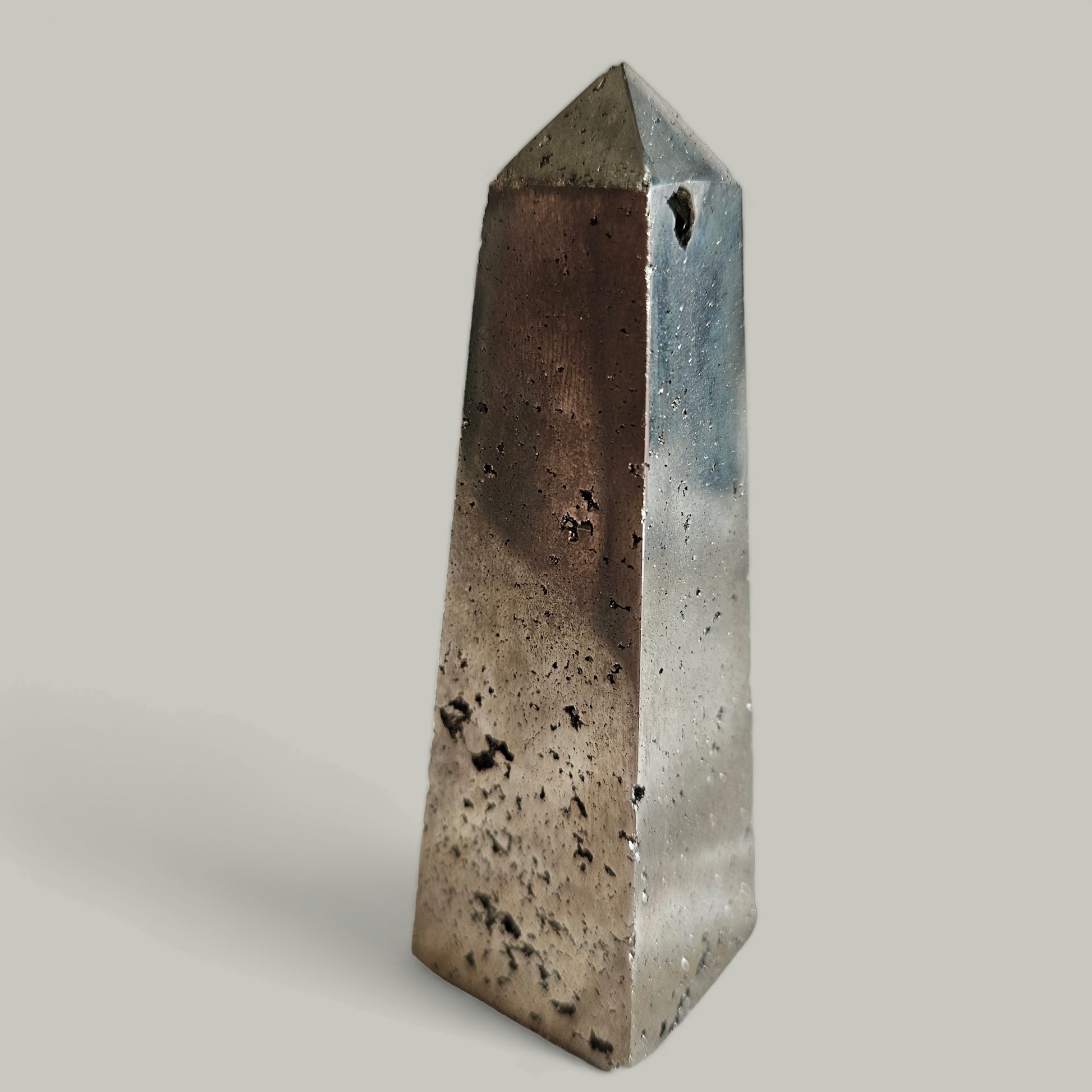 Du erhältst den abgebildeten Pyrit Turm in einer Größe von ca. 9 cm und mit einem Gewicht von ca. 189 g.