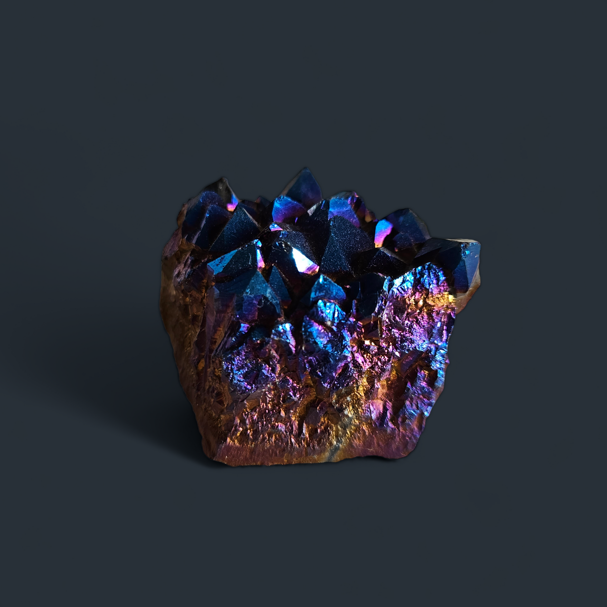 Regenbogen Aura Cluster werden aus natürlichen Bergkristallen gewonnen, die in einem aufwendigen Prozess mit edlen Metallen wie Gold und Platin überzogen werden. Das Ergebnis ist ein wahrhaft magisches Farbspiel, das in allen Farben des Regenbogens schillert. Dieser Effekt entsteht durch die Bindung der Metalle an die Kristalloberfläche und verleiht jedem Cluster ein unverwechselbares und strahlendes Aussehen.