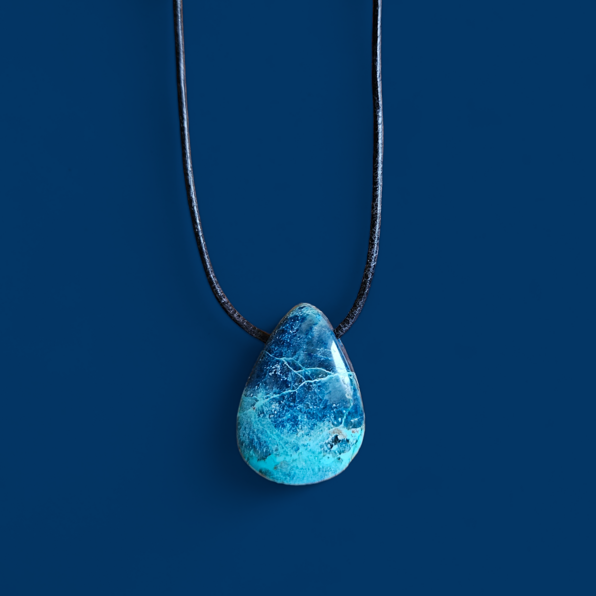 Der Shattuckit Kettenanhänger, mit seiner erfrischenden blauen Farbe, ist ein einzigartiges Schmuckstück, das die Klarheit des Himmels einfängt. Jedes Stück dieses Steins ist von Natur aus individuell gemustert, was ihm eine ganz besondere Note verleiht. Shattuckit wird mit spiritueller Erkenntnis, Kommunikation und innerem Frieden in Verbindung gebracht.